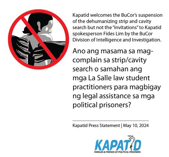 Kapatid welcomes suspension of strip search, but questions BuCor “invitations” to investigate spox