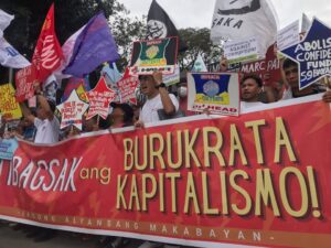 Bayan Chairperson Teddy A. Casino said the organization, established in 1985, was compelled to delay its celebration owing to the flood of serious issues confronting the nation, from graft and corruption that stripped the infrastructure budget, specifically for flood control projects (FCPs) of no less than 60% of the approved allocations, and called for nationwide mobilization to denounce the private appropriation of public funds and expose the criminal conspiracy of lawmakers and bureaucrats, from the Department of Public Works and Highways (DPWH), the Department of Budget and Management (DBM), the Commission on Audit (COA) and Malacanang to spend taxpayer money like there is tomorrow and divvy up the cash for the benefit of political dynasties.
